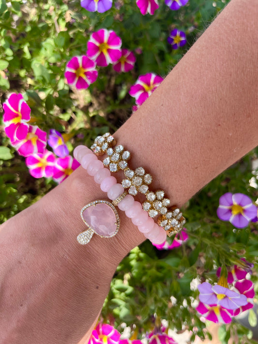The Woods Rose Quartz Mushroom and Jade Bracelet