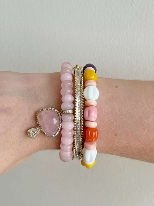 The Woods Rose Quartz Mushroom and Jade Bracelet