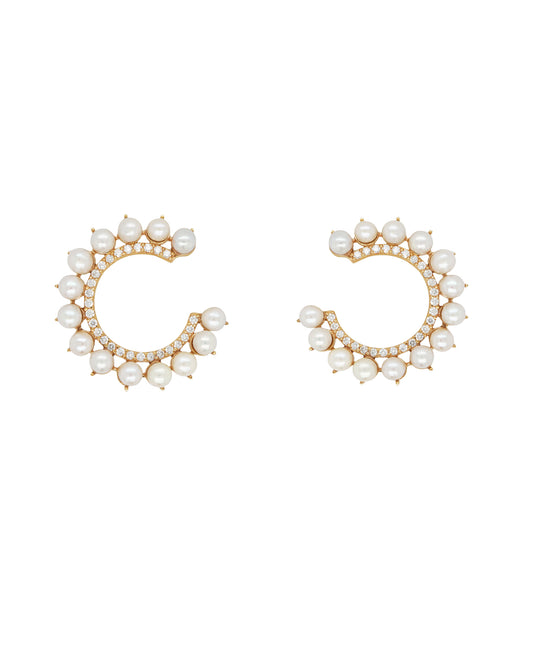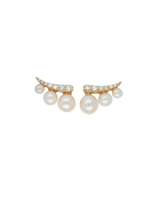 Vintage La Rose 14K Crescent Pearl Crawler Earrings