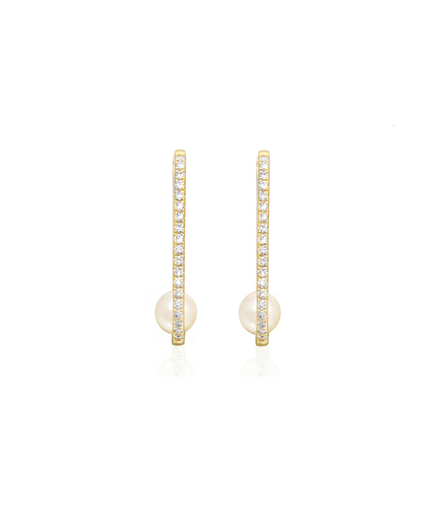 Vintage La Rose 14K Pearl Diamond Huggies